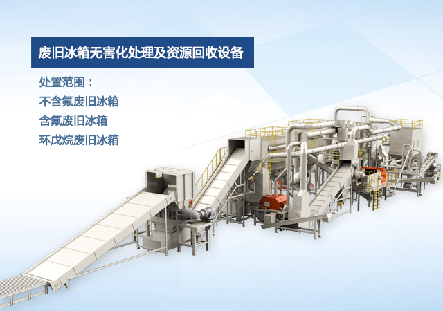 公司自主研發(fā)的廢舊冰箱無害化處理及資源回收技術(shù)及設(shè)備, 獨(dú)具 “雙軸撕碎機(jī)+立式破碎機(jī)+大風(fēng)量稀釋環(huán)戊烷氣體”的專利組合設(shè)計(jì), 主要用于對(duì)廢舊冰箱中的各種原材料進(jìn)行分離、 回收和利用, 具有自主知識(shí)產(chǎn)權(quán), 經(jīng)國(guó)家工業(yè)和信息化部科技成果鑒定為 “填補(bǔ)國(guó)內(nèi)空白, 達(dá)到國(guó)際先進(jìn)水平” 。